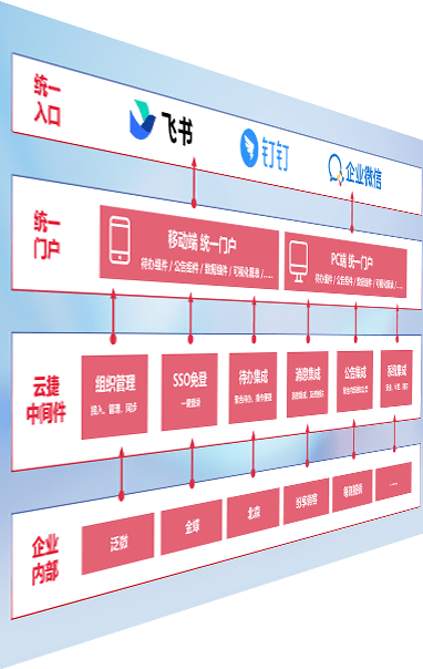 对协作平台提供支持服务,,,支持企业应用与协作平台对接,,,,包含组织同步、、消息集成、、、、待办集成等。。。支持目前主流的协作平台:钉钉、、、企微和飞书。。